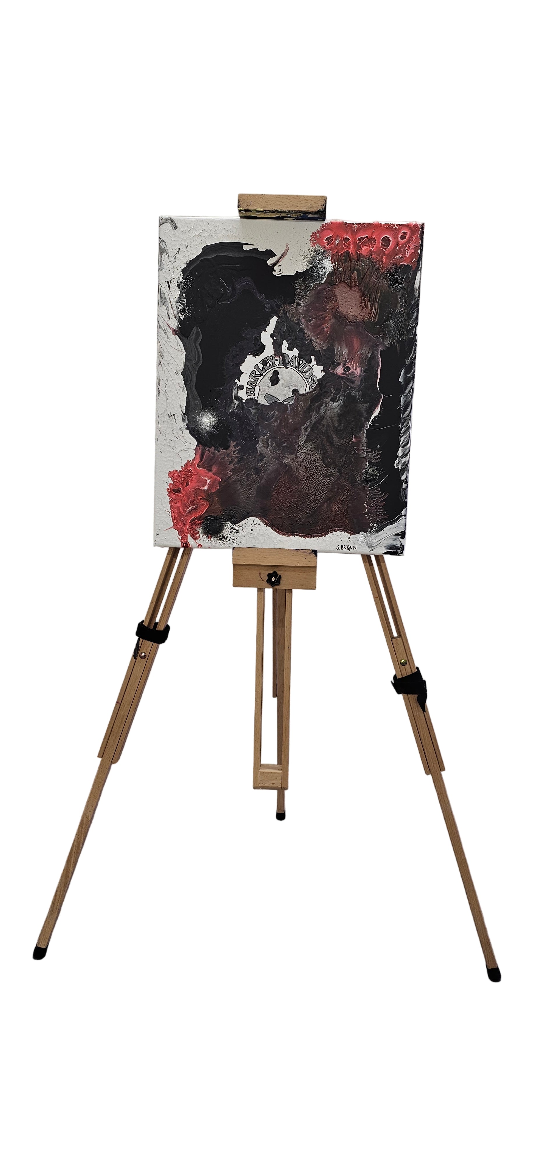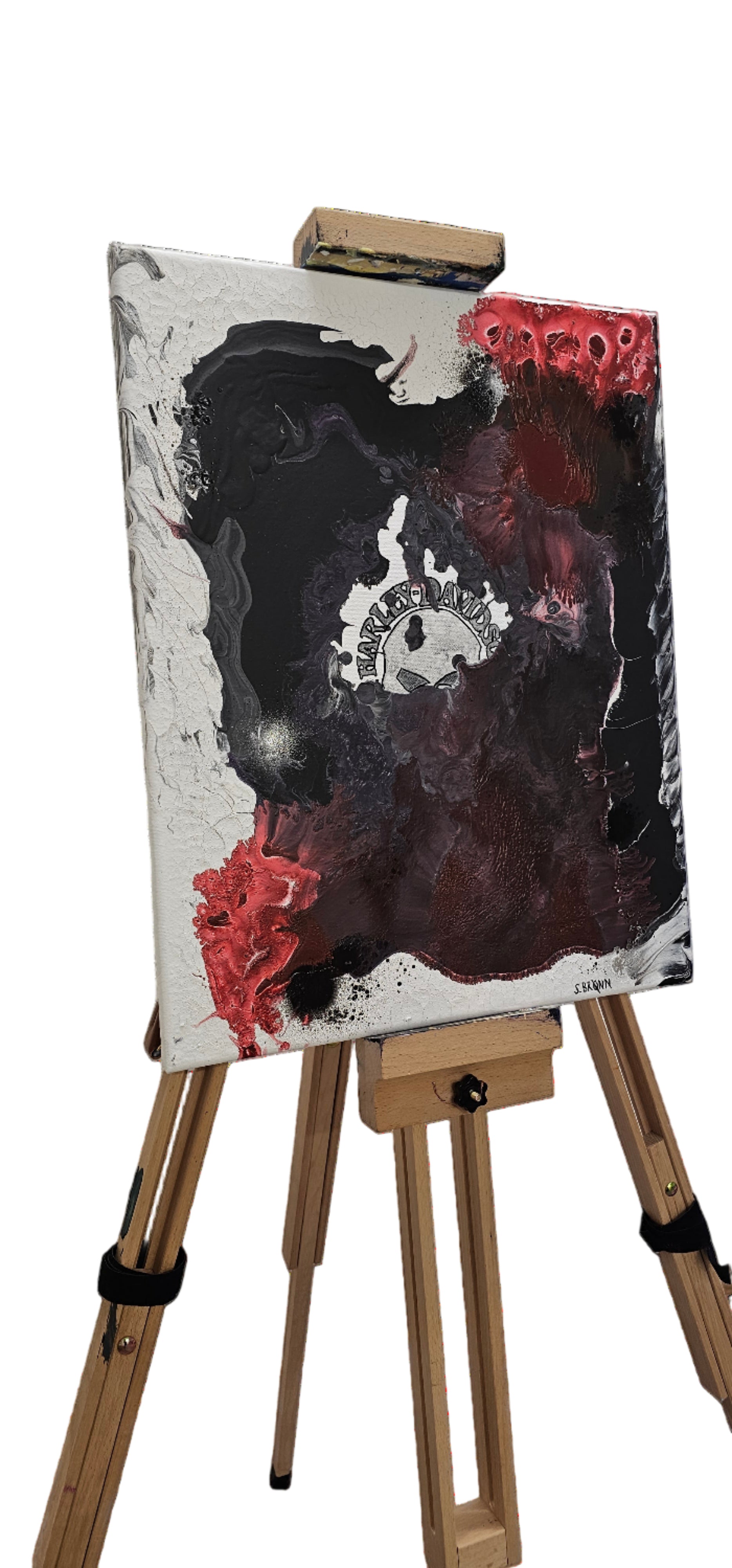 Eine abstrakte Darstellung von Explosion von Asphalt, Öl und Adrenalin – eine künstlerische Interpretation des Harley-Spirits: Freiheit, Rebellion und pure Energie.